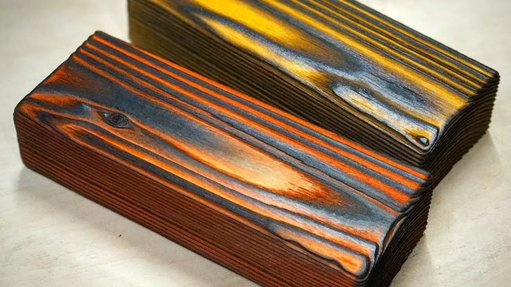 Для брашировки также используется обжиг. Благодаря ему можно получить необычный декоративный эффект. Суть техники заключается в том, что по заготовке аккуратно проходятся паяльной лампой или газовой горелкой. При этом регулируется подача пламени и количество проходов. Благодаря такому подходу возможно получить разные красивые оттенки.