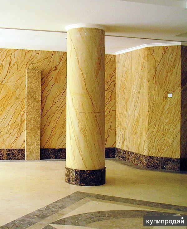 Гибкость полотна позволяет отделывать сложные криволинейные поверхности — колонны, ниши, карнизы и т.д. Материал практически невосприимчив к влаге, а значит, можно использовать его в кухнях и даже в ванных комнатах (кроме зон прямого контакта с водой).