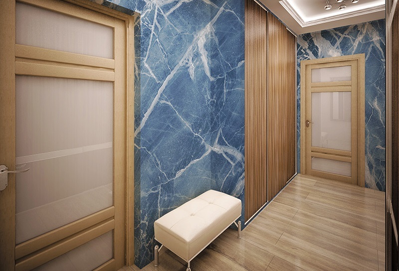К минусам подобных решений в оформлении можно отнести лишь немалую стоимость покрытия. Однако, даже самые дорогие разновидности таких плит или обоев обойдутся дешевле натурального камня.