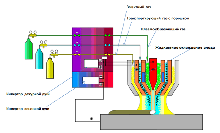 Плазменный газ аргон в сочетании с защитным газом аргоном/водородом . Повышенное тепловложение от защитного газа снижает поверхностное натяжение материала и позволяет увеличить скорость перемещения.