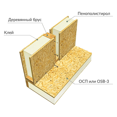 Между двумя пластинами двухкомпонентным клеем клеится полистирол, и получается СИП-панель (структурная изоляционная панель).