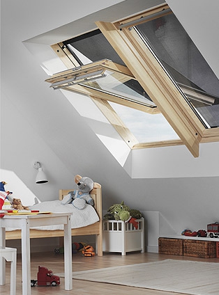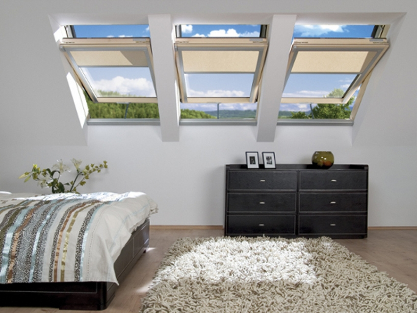 Световые люки с центральной осью пропускают много свежего воздуха. Вся оконная панель открывается и закрывается на центральной оси, пропуская много свежего воздуха. Это может быть хорошим вариантом для чердаков, помещений над гаражами и других помещений с наклонными низкими потолками.