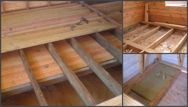 Полосы пленки кладут внахлест, проклеивая скотчем стыки. Поверх пароизоляционной пленки укладывают минеральный утеплитель в виде плит или рулонов. Толщина утеплителя должна быть такой, чтобы не выступать над поверхностью балок. Можно использовать в качестве утеплителя и другие материалы: вспененный полистирол, керамзит, эковату. При этом необходимо обращать внимание на огнестойкость материала утеплителя.Процесс утепления пола