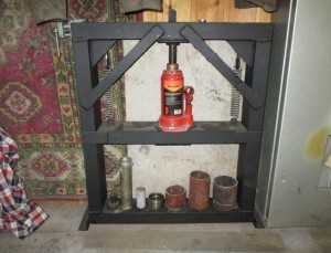 А если немного поработать с деревом – из самодельного гидравлического пресса можно соорудить настоящую маслобойню.