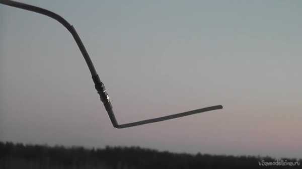 После этого загибаем кабель у линии основы под прямым углом. Антенна готова. Остается установить ее снаружи так, чтобы она смотрела в сторону передающей антенны. Тут стоит отметить, что если расстояние от передающей антенны больше 15 км, то придется применить усилитель антенны.