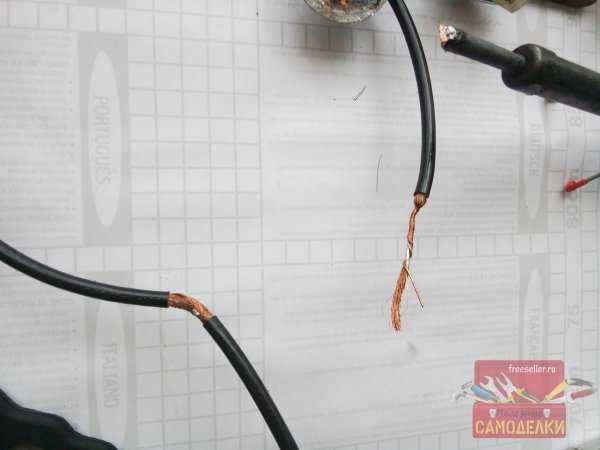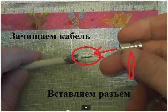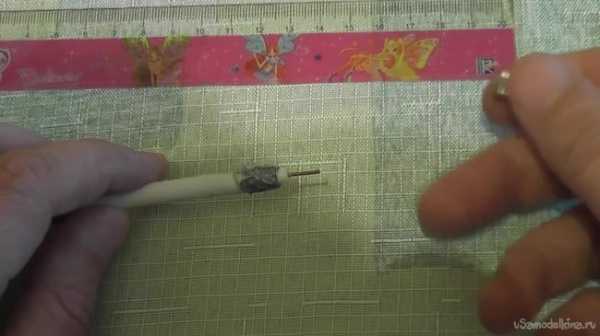 Далее берем обычный антенный кабель, зачищаем его с одной стороны и вставляем разъем.
