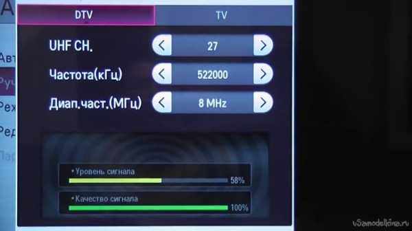 Приступаем к настройке телевизора. Заходим в меню «Ручные настройки». Проверяем уровень и качество сигнала. Убеждаемся, что сигнал хороший.