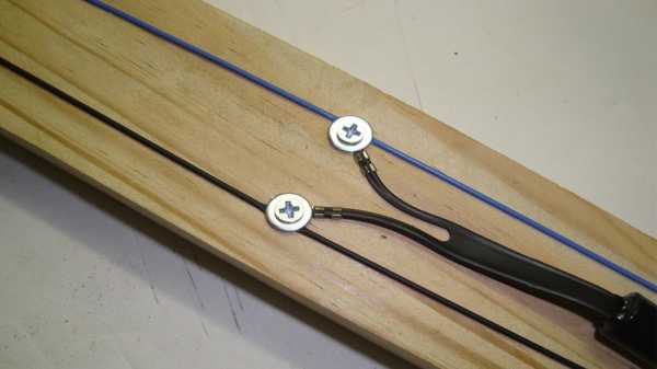 ![]() | Отматываем провод длиной 3 м 10 см и добавочно 15 см с начала, которые уйдут на пайку и крепление к конденсаторам. Зачищаем отмеренное расстояние, далее отмеряем ещё 16 см и снова зачищаем участок. Таким образом действуем до конца длины провода. |