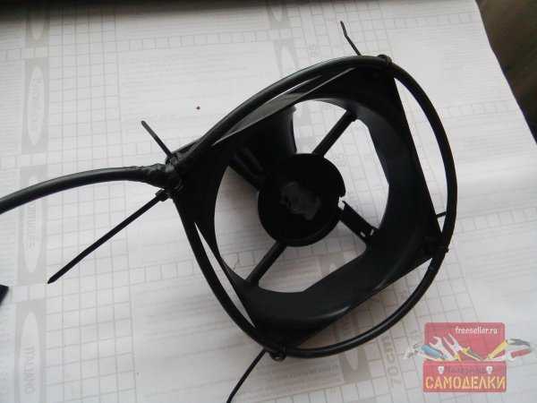 Универсальный кронштейн собрал из держателя для телефона с присоской и корпуса от сгоревшего вентилятора для охлаждения сварочного аппарата.