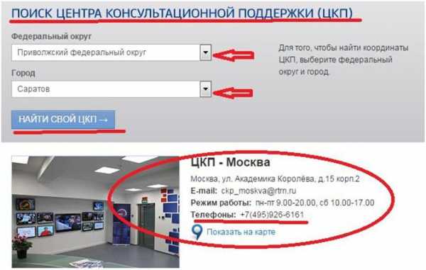 Затем нажать на кнопку «Найти свой ЦКП» чуть ниже. Еще ниже в окошке появится результат поиска, где будет указан телефон, куда можно позвонить и узнать номер канала.