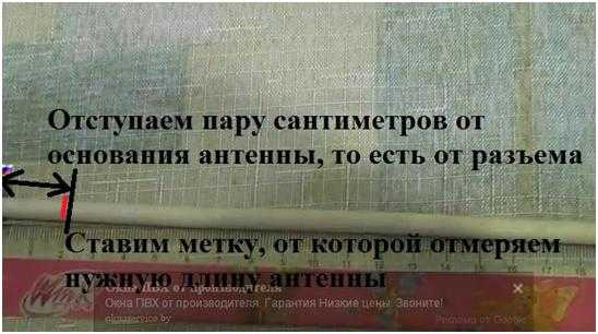 Отступаем пару сантиметров от края разъема, ставим метку. Это будет основание антенны.