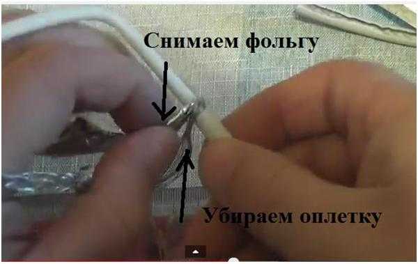 Также снимаем оплетку. Она нам не нужна. Фольгу тоже снимаем.