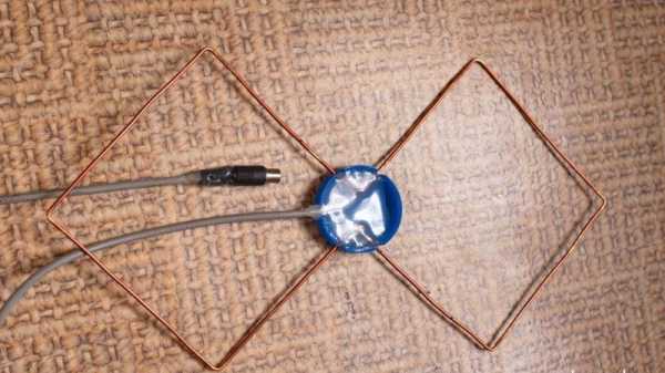 Остальные пропорции стандартные — высота устройства должна совпадать с шириной, пластины расходятся под прямым углом. Нулевой потенциал находится на крайней линии домашней антенны для телевизора, как раз на пересечении кабеля с вертикальной направляющей. Чтобы избежать потерь качества, кабель нужно притянуть к ней стяжкой — этого достаточно для согласования. Подобная антенна, вывешенная на улицу или направленная на окно, принимает фактически весь диапазон частот, но имеет небольшой провал, поэтому нужно выставить правильный угол при фиксировании антенны.