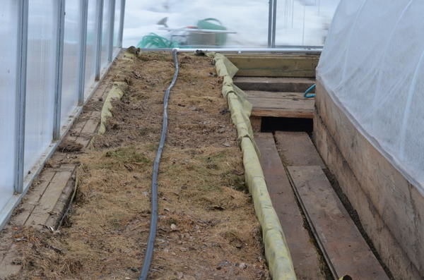 А вот второй способ системы автополива с применением труб под почвой в теплице неприхотлив к качеству воды.