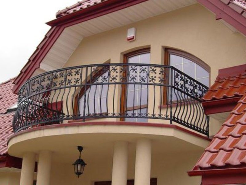 - Металлические. Легкие и сравнительно недорогие конструкции, которые могут быть украшены коваными декоративными элементами. Крепятся к фасаду с помощью специальных закладных деталей.
