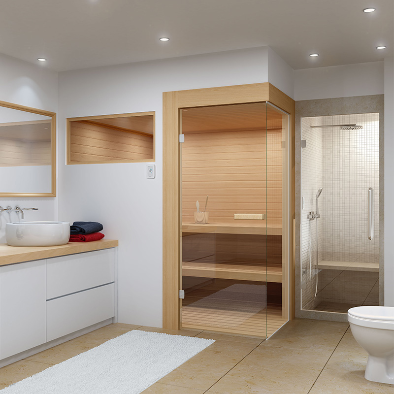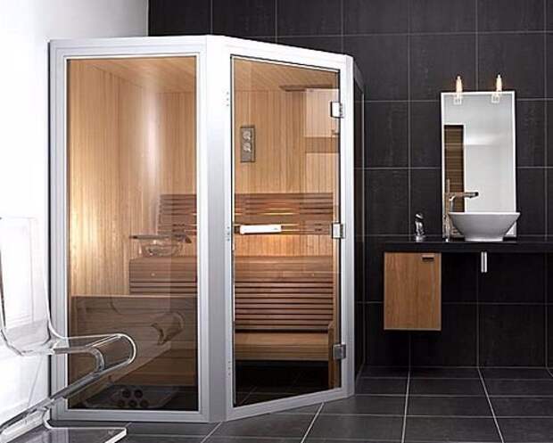 Сауна в ванной представляет собой кабину, в которой создается необходимый микроклимат. В одной и той же парилке сауны можно создать три разных вида микроклимата: