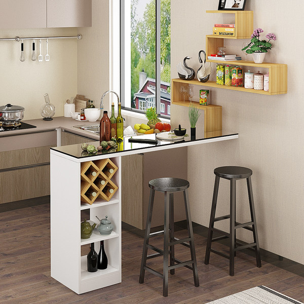 Такие дополнения можно сделать открытыми так и прятать в специальные ниши и отсеки. На кухне такая стойка в первую очередь должна быть функциональной и подходить для разных поводов.