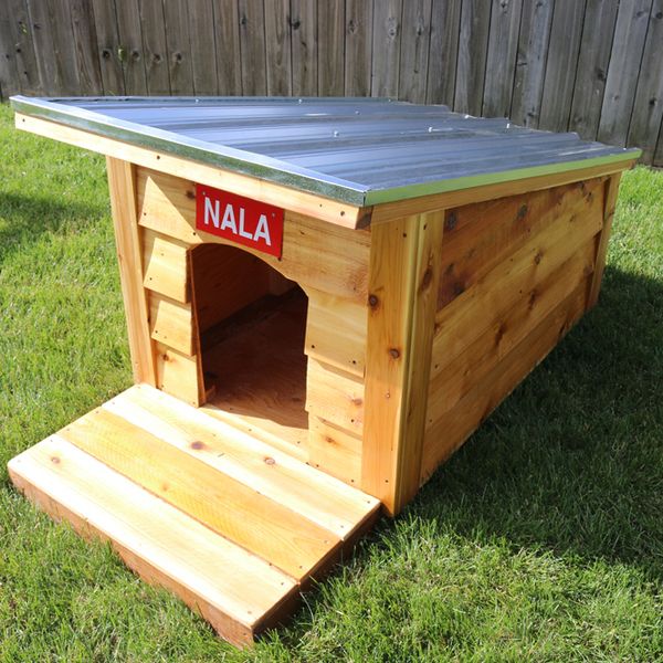 Это не очень хорошая идея, потому что летом в них слишком жарко, а зимой слишком холодно. Мы где-то читали на форуме, что натуральное западное красное кедровое дерево — лучшее. Он предлагает лучшую изоляцию для собак: тепло зимой и прохладно летом. Масла красного кедра также являются естественным средством от клещей, блох и термитов. Если вы решите использовать эту древесину, вы также должны знать, что она очень проста в уходе. Посыпание щепками или стружкой красного кедра подстилки также помогает защититься от большинства жуков. Деревянные крыши также отлично подходят для поддержания нужной температуры.