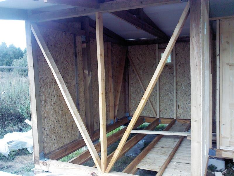 Внутренняя отделка также может иметь эконом вариант из ОСБ (OSB)или ДВП,