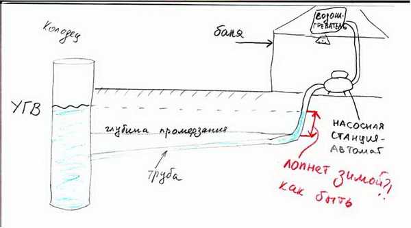Водопровод зимой до бани из скважины или колодца