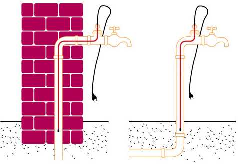 - Электроподогрев состоит в обматывании коммуникации нагревательным проводом, подключенным к сети. Длительность размораживания зависит от протяженности ледяной пробки и может продолжаться до 3 часов.