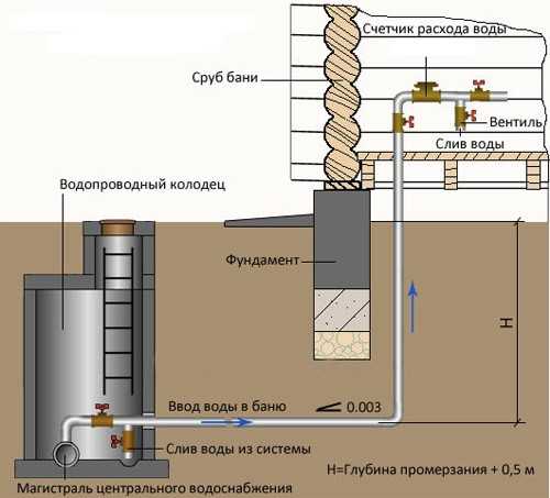 Технические особенности водопровода в бане зимой, описание и монтаж