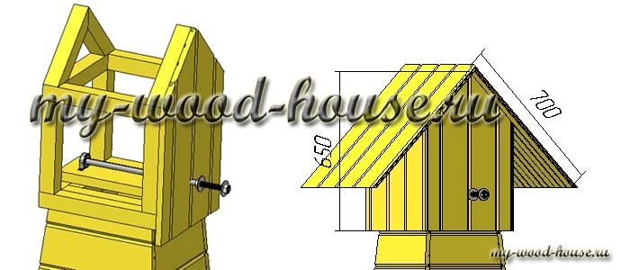 Скаты можно сделать из ДСП или фанеры. Размер сторон может и не соответствовать указанным выше параметрам, главное, чтобы крыша гармонично сочеталась с каркасом.