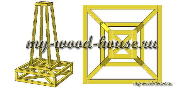 Первоначально изготавливается нижняя часть мельницы – платформа. Она должна обладать достаточной устойчивостью, чтобы выдержать нагрузку всей конструкции.