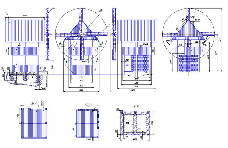 Для этих целей вы можете использовать доски, имеющие ширину 15 см, а толщину 20 мм. В качестве материала для платформы лучше всего использовать вагонку. Если речь идет о строительстве беседки в форме мельницы, то вам следует залить облегченный вариант ленточного, столбчатого или монолитного фундамента.