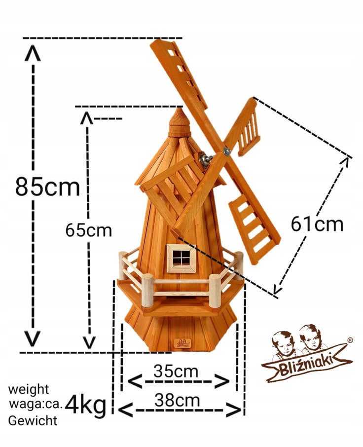 Мельницу, установленную на такое основание невозможно украсть. Но если беспокоиться о безопасности нет предпосылок, то в качестве основания могут служить деревянные ножки с пластиковыми наконечниками. То есть, в заливке фундамента необходимости нет и вовсе.