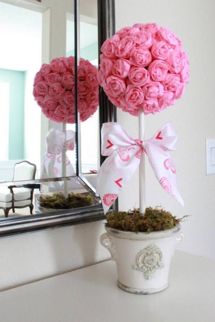 На свадьбе или дне рождения будут актуальны декоративные топиарии из искусственных цветов и лент, дополняющие или оттеняющие основной цвет праздника.