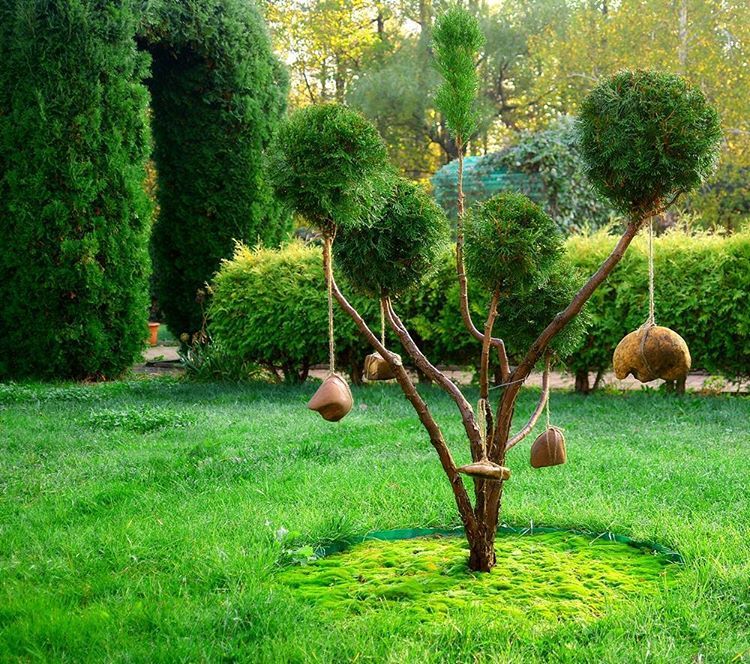 Последнее время популярное название «дерево счастья» сменилось модным европейским – топиарий. Этим словом с древних времён называлось искусство создания скульптур из живых растений: густые вечнозеленые деревья и кустарники в процессе фигурной стрижки превращались в скульптурные изображения или принимали самые причудливые формы.