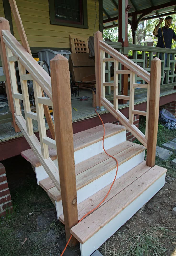 Если на вашем переднем или заднем крыльце есть ступеньки без перил, вы можете сделать перила самостоятельно или доверить их профессиональному плотнику или поставщику перил.