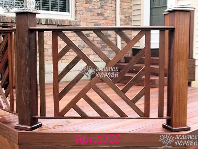 Верхняя сторона поручня скруглена по краям и тщательно ошлифована. Балясины в сочетании с горизонтальными перемычками создают интересную композицию из полос и перекрестий.
