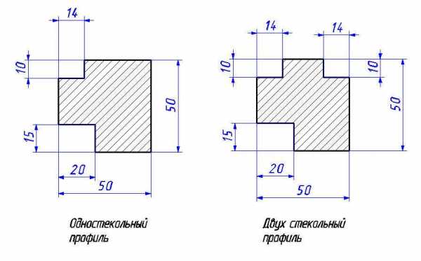 - если профиль для окна будет иметь два стекла, то конструкция должна иметь на один паз больше. Здесь два паза необходимы для установки стекла, и один для того чтобы закрепить в короб;