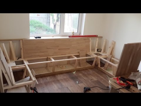 Стыковать детали нужно на ровной поверхности, применяя шканты и клей. Для перехода к следующему шагу сборки нужно дождаться полного высыхания поверхности.