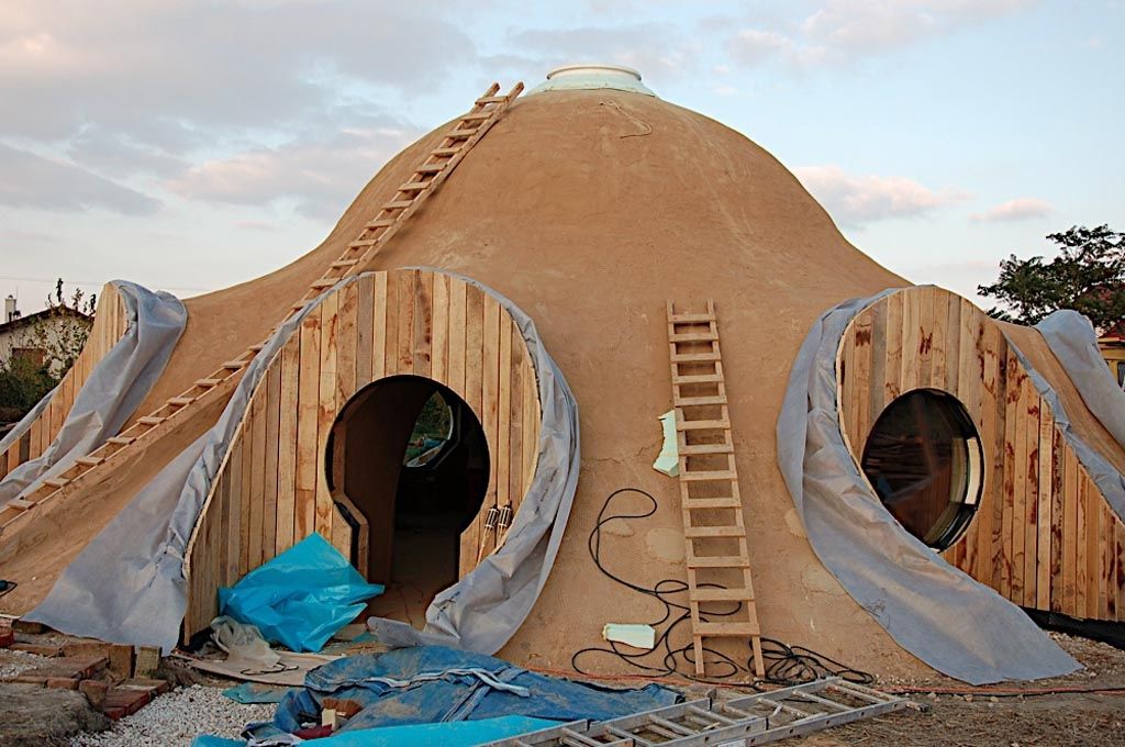 - Дом из глинобитного кирпича, который является натуральным и пригодным для повторного использования материалом
