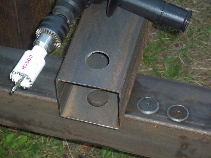 - Удерживая планку там, где вы хотите, убедитесь, что она выровнена, и отметьте отверстия для точек сверления. Снимите стержень и просверлите отметки 3 1/2 дюйма — 4 дюйма (такой же длины, как резьба на болтах. Используйте сверло на 9 мм, даже если это болт на 10 мм).