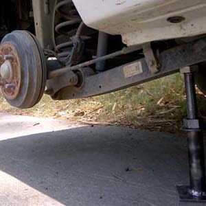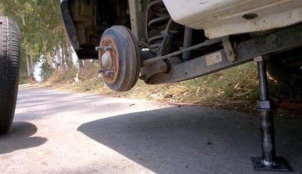 На фото: домкрат в работе.