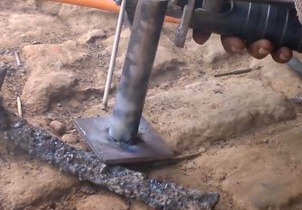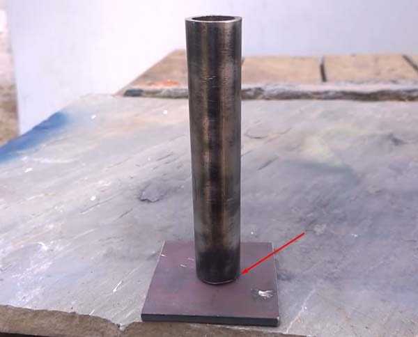 Затем к трубе привариваем пластину.