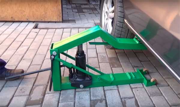 На фото показан самодельный домкрат в работе.