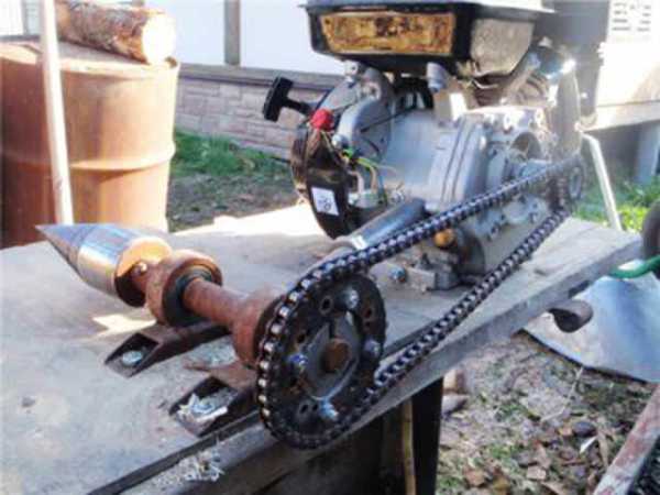 Двигатель дровокола может быть электрическим или бензиновым. Первый вариант будет предпочтительнее. Кстати, мощность двигателя должна составлять не менее 3 кВт. Также можно использовать четырехтактный двигатель от мотоблока, мощность которого 4,5 кВт с автоматическим сцеплением и встроенным пониженным редуктором 1:2.