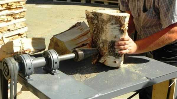 - Это вращающийся конус, который врезается в чурку, разрезая ее пополам.