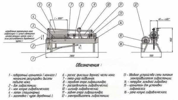В соответствии с проектом сваривается рама. Если есть необходимость в перемещении агрегата, то нужно позаботиться о надежном шасси и возможности его блокировки на время колки дров.