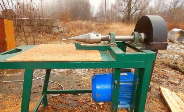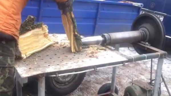 На таком дровоколе древесные бревна подаются по желобу и попадают на режущий орган. Получается такая своеобразная мини-лесопилка. Конечно же, можно купить в магазине фабричный дровокол, вот только цена его может огорчить Вас и сделать планируемую выгоду значительно меньшей.