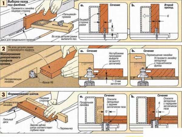 Рис. 3 и 4: процесс изготовления филенчатой двери для бани