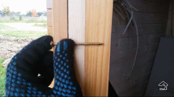 - Затем можно крепить обвязку. Ее бруски соединяются между собой в «шип», либо внахлест в ½ сечения. Обвязка дверного полотна также крепится при помощи саморезов и клея.