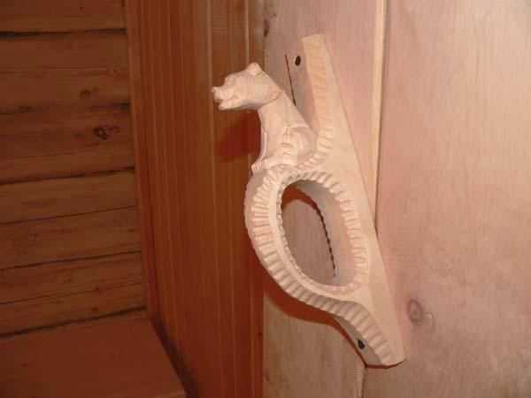Выбирая дверную фурнитуру для изделия, которое планируется установить в баню, пристальное внимание обращайте на материал ее изготовления. Материал должен быть нечувствительным к высокой влажности, а также иметь низкую теплопроводимость. Это важно потому, что если использовать для банных дверей ручки и щеколды из металла, то они будут сильно раскаляться в момент растопки бани, и об их поверхность можно серьезно обжечься. Ручки и щеколды для дверей в баню лучше всего также купить деревянные.