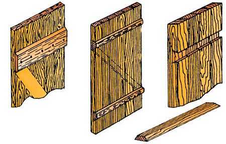 - Ну и третий вид – дощатое дверное полотно. Самый оптимальный вариант, в нашей ситуации, не слишком дорогой, достаточно прочный, просто изготовляется своими руками, чаще всего используется для создания банных дверей.