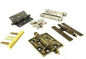 Изготовление самодельных банных дверей завершается монтажом фурнитуры. В первую очередь стоит позаботиться о прочных и надежных петлях, оптимальное их количество – 3 штуки. Обычно используются врезные модели карточного типа.